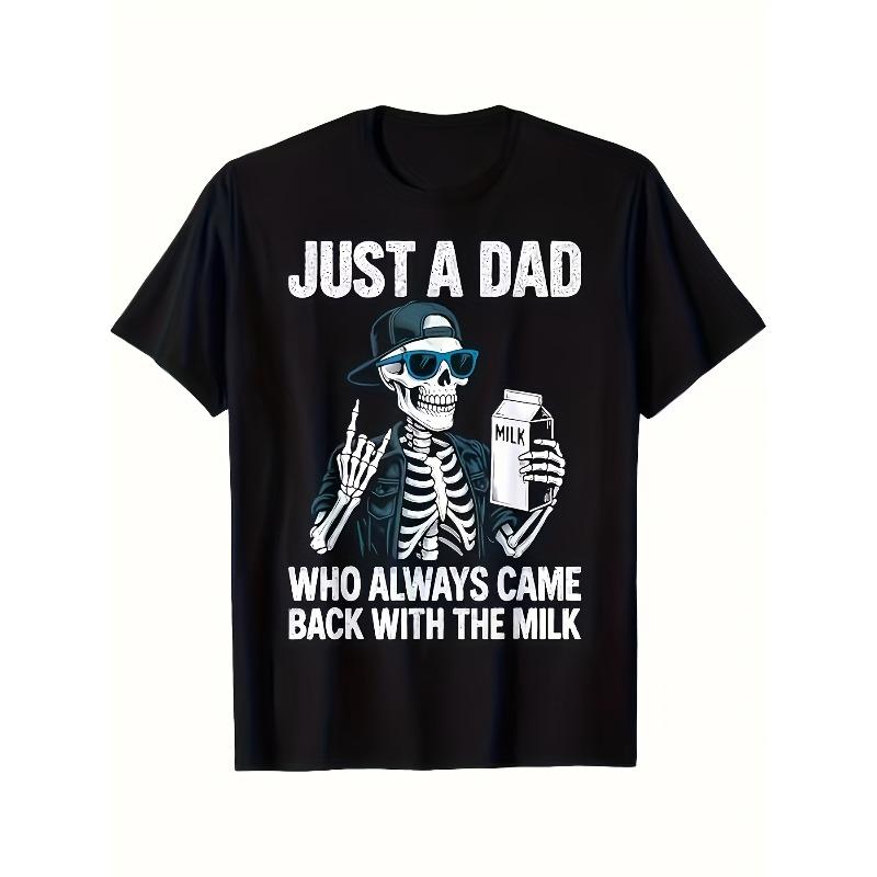Ευρωπαϊκά μεγέθη Ανδρικό Αστείο T-Shirt για την Ημέρα του Πατέρα - Απλά ένας Μπαμπάς που Πάντα Φέρνει Σπίτι το Γάλα, Με Χιουμοριστικό Σχέδιο Κρανίου, Μαύρο Casual T-Shirt,