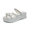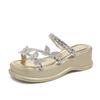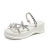 Platform Heightened Sandals Summer Wear New Round Head Rhinestone Butterfly Thin Belt Wedge Two-wear Flip-flops