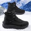 Men's Winter High-Top Snow Boots with Fleece Lining Thickened Non-Slip Warm Fur and Cold-Resistant Cotton Hiking Shoes Sneakers
