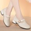 3cm All Match T Buckle Shallow Soft Leather Shoes Mary Janes Fall 2025 Women's Square Heels Shoes for Office Mom Work Daily