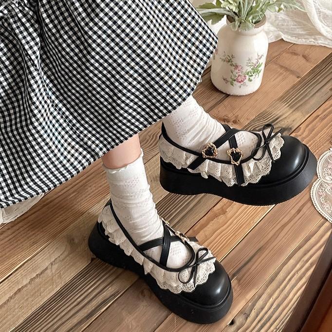 French retro heightening platform small leather shoes spring versatile British style round head Mary Jane single shoes