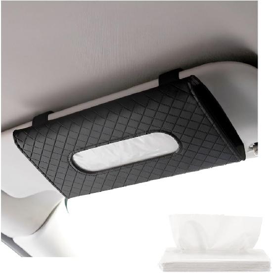 Car Tissue Holder, Leather Sun Visor Hanging Napkin Holder with Tissue Refill, Clip-On Visor Mask Dispenser Premium Paper Towels Case for Vehicles,