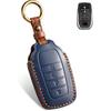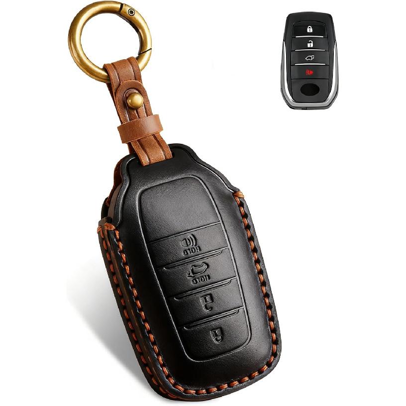 QBUC for Toyota Tundra Leather Key Fob Cover, 4 Button Key Holder Protector for Toyota -2025 Land Cruiser Venza RAV4 Corolla Sequoia Sienna Crown