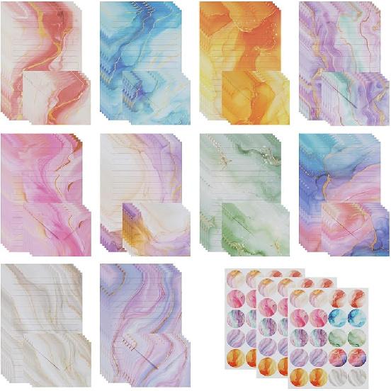 160 Pcs Stationery Paper Set (50 Writing Papers + 50 Matching Envelopes + 60 Round Dot Stickers), Unique Marble Pattern Style Writing Stationery