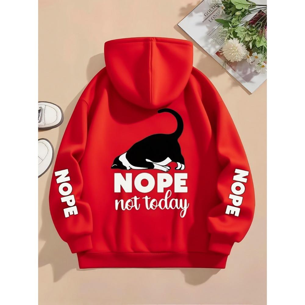 Nope Not Today Prints Hoodies Womens Cute Cat Pullovers Loose Pocket Tops Warm Fleece Sweatshirts Winter Woman Clothing