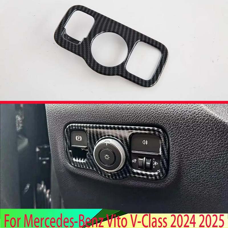 For Mercedes-Benz Vito V-Class 2024 2025 Car Accessories Carbon fiber style Head Light Switch Button Control Panel Cover Trim