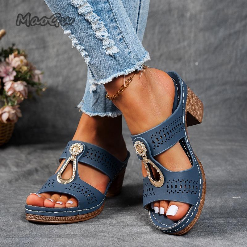 Women Summer Lightweight Hollow Sandals Fashion Chunky Heel Open Toe Slippers Female 2026 Casual Outdoor Slides Shoes Size36 43