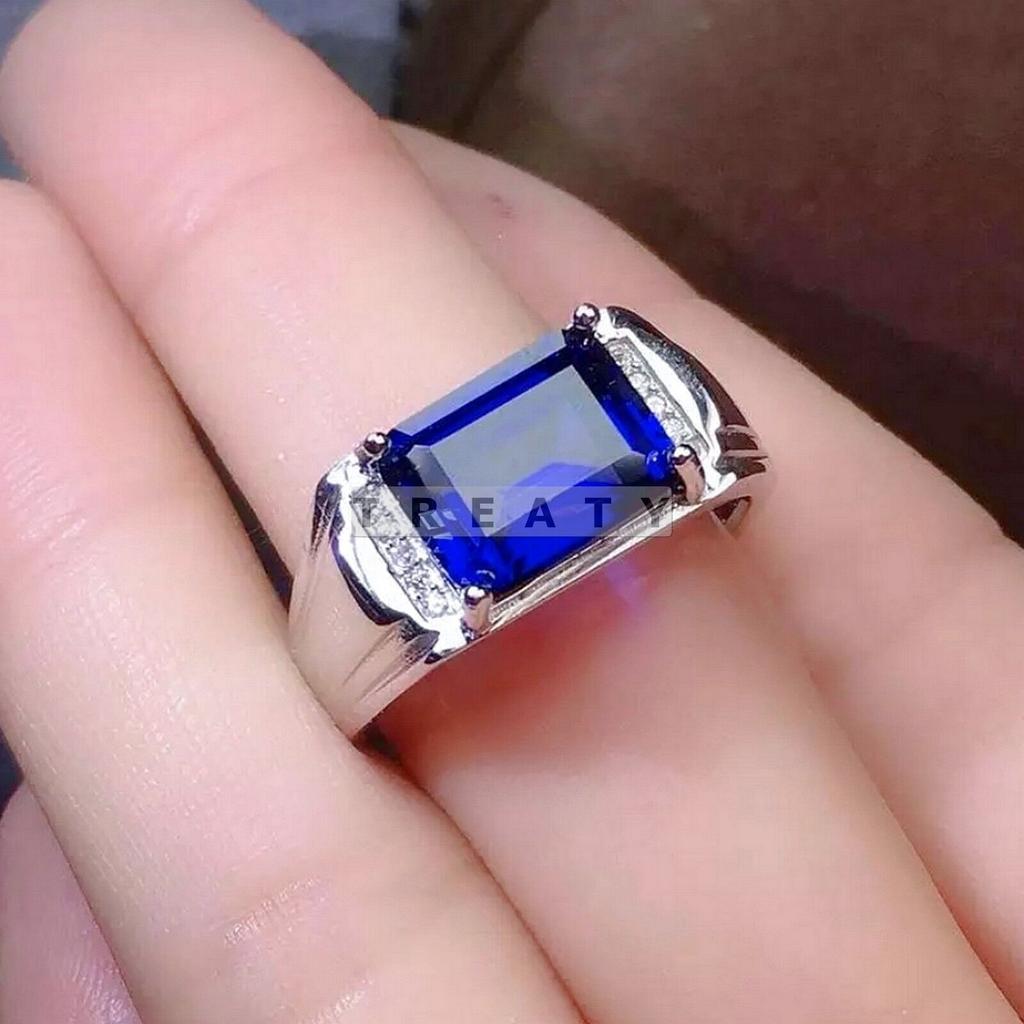 Blue Sapphire Emerald Cut Gemstone With 925 Sterling Silver Ring For Men's #20 JL375718167288