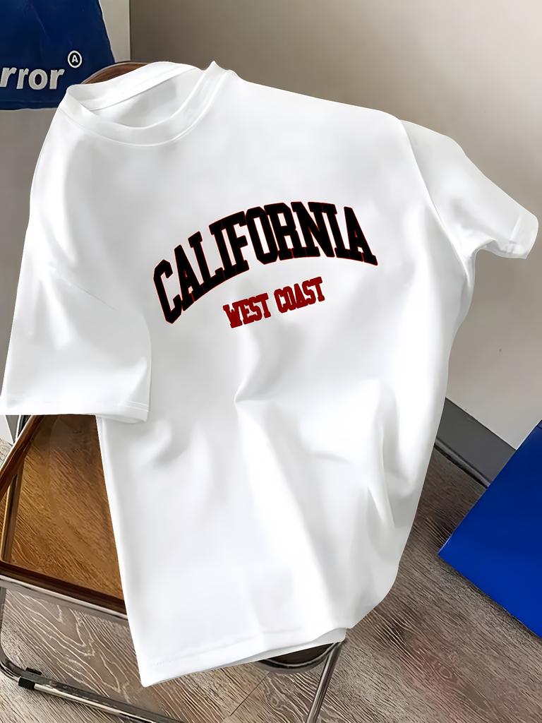 Mens California West Coast Printed Short Sleeve TShirt Bright Blue with Red and White Letters 100 Polyester Regular