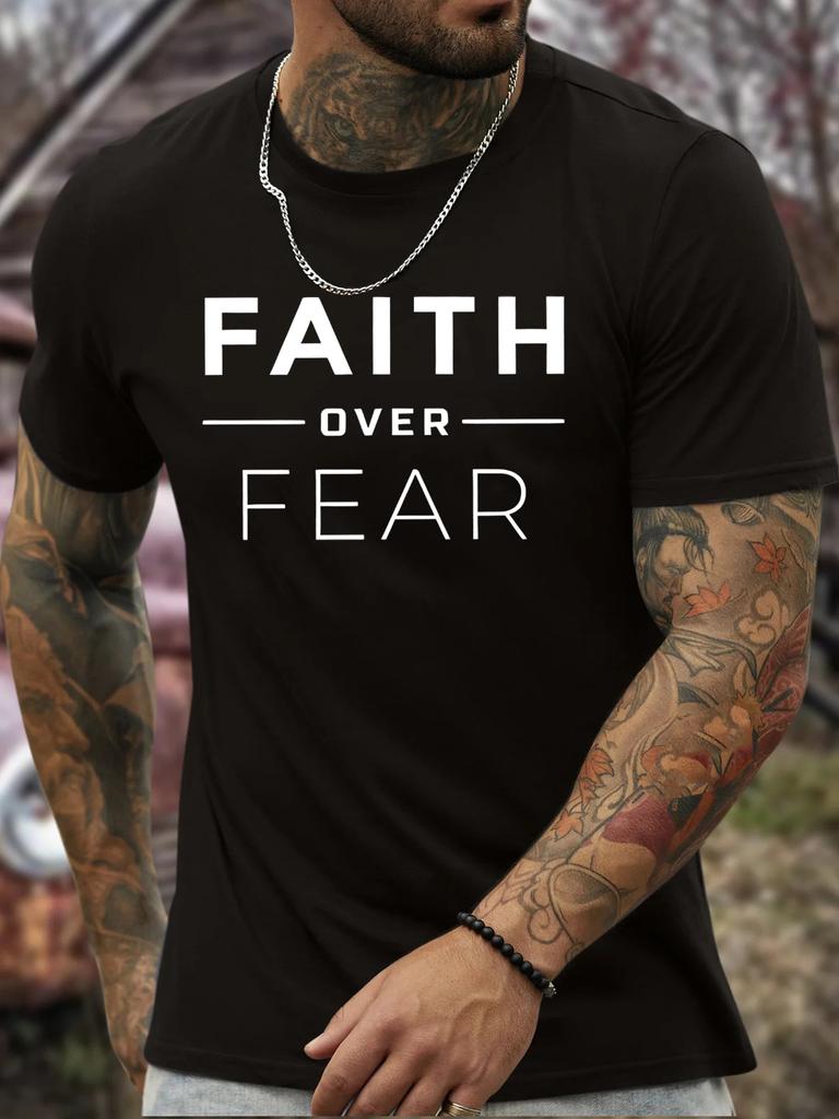 FAITH OVER FEAT Inspirational Print Mens Crew Neck Short Sleeve TShirt Summer Casual Comfort Top