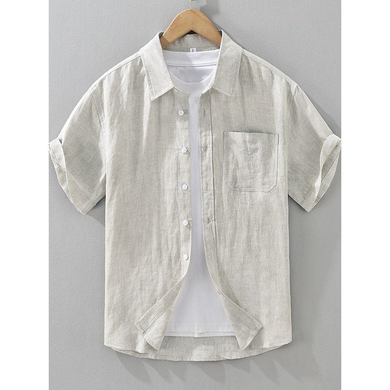 Foreign Trade Surplus Summer New All-Linen Short-Sleeve Shirt for Men, Loose Casual Half-Sleeve Shirt, Trendy Simple Top