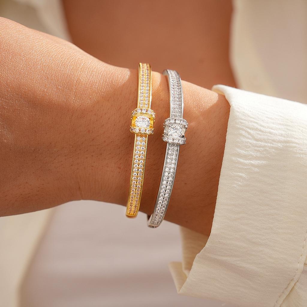 18K real gold electroplated diamond set oval buckle bracelet fashionable exquisite geometric jewelry