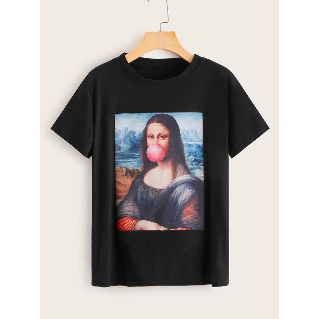 Women's Tops Sexy Tops for Women Shirts Bubblegum Mona Lisa Graphic Tee Shirts (Color _ Black, Size _ X-Small)