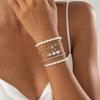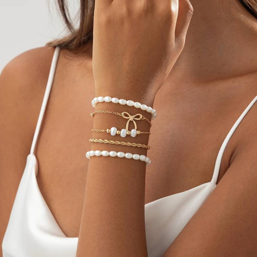 Salircon 4Pcs/set Fashion Imitation Pearl Bowknot Bangle Bracelets Women Boho Vintage Gold Color Bangle Couple Jewelry Gift