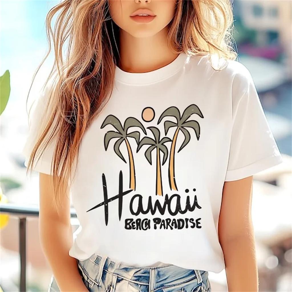 2025 T-Shirt Fashion New Vacation Printed Casual Round Neck Summer Pattern Cartoon Women's T-Shirt Style 90s Harajuku Retro Top