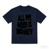 Mens and Womens Retro Loose Tshirts All We Need Is Money Print Pattern White and Black Casual Street Style