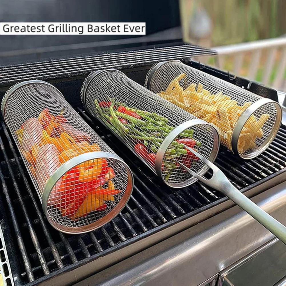 Καλάθι μπάρμπεκιου από ανοξείδωτο χάλυβα Καλάθι ψησίματος συρμάτινο πλέγμα κυλινδρικό φορητό στρογγυλό υπαίθριο ράφι μπάρμπεκιου για κάμπινγκ