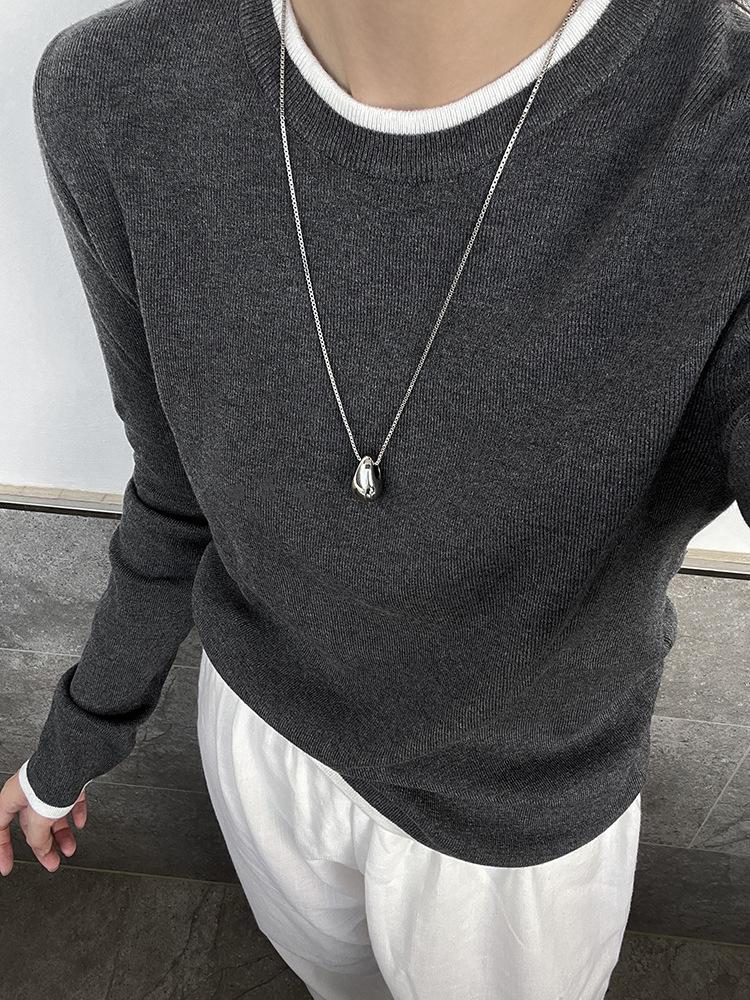 Minimalist style and color retention, adjustable pull-out smooth surface metal water drop necklace, autumn and winter neck chain, sweater chain.