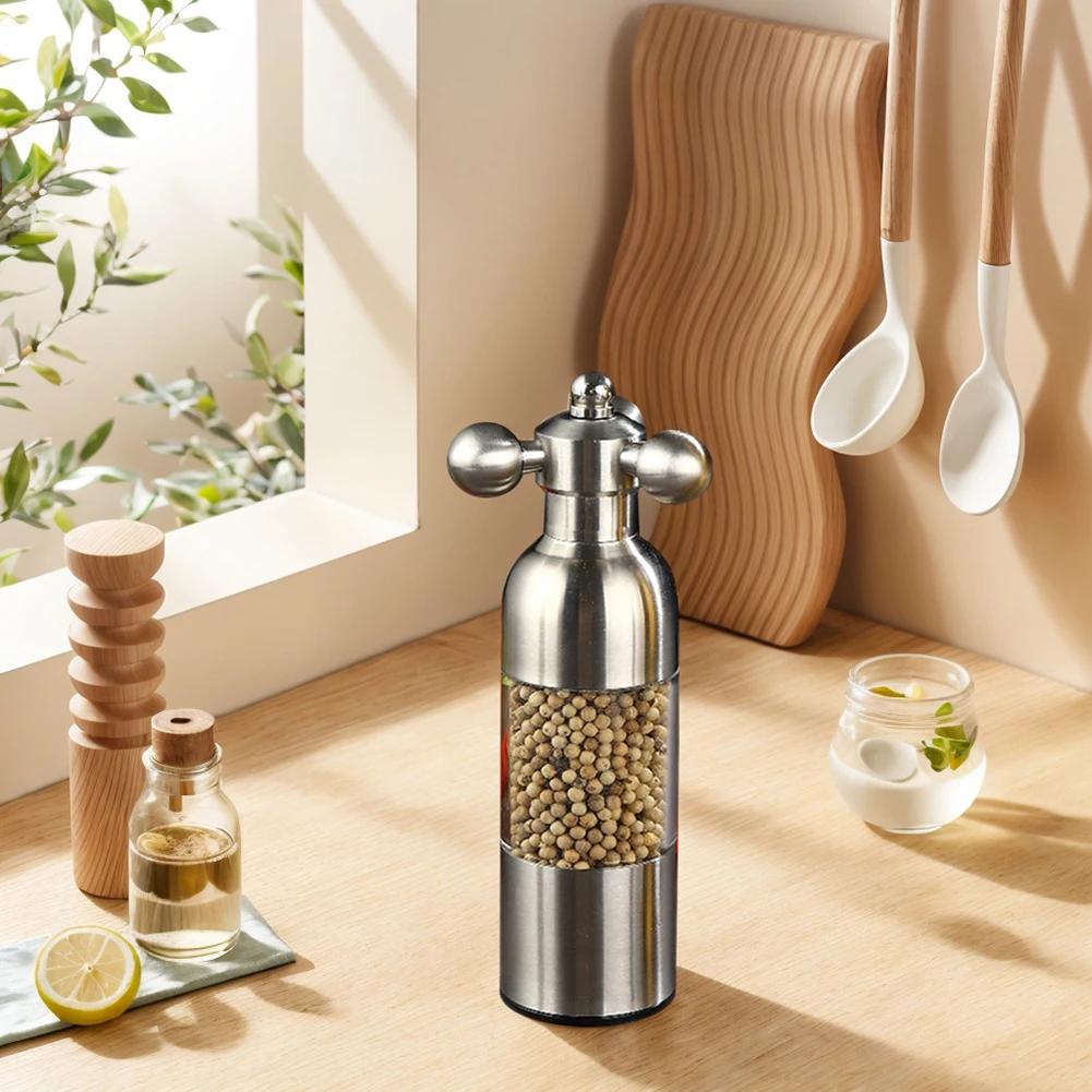 Small Manual Grinder 304 Stainless Steel Spice Seasoning Bottle Adjustable Coarseness Manual Grinding Bottle Home Kitchen Tools