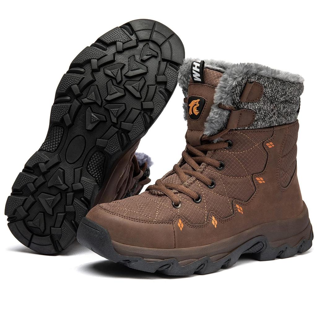 NEARDREAM Snow Winter Trekking Shoes with Fleece Thick Size Men's Boots, Lining, High-Top Design, Non-Slip, Lightweight, Sole, Warm, Brown, 25.5