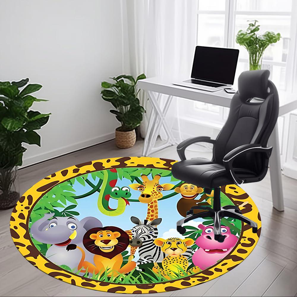 1pc Safari Animals Carpet for Office Non-Slip, Round Carpet, Soft & Comfortable, Carpet for Office, Lightweight Round Floor Mat