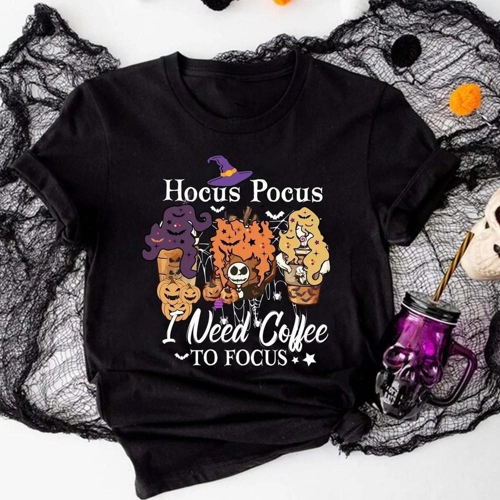 Hocus Pocus Χρειάζομαι Καφέ Για να Συγκεντρωθώ Halloween Μάγισσα T-Shirt Άνδρες Γυναίκες Unisex T-Shirt
