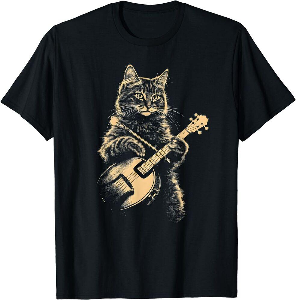 NEW LIMITED Banjo Cat Retro Funny Cat Playing the Banjo Design Fun Shirt S-5XL Unisex T-Shirt