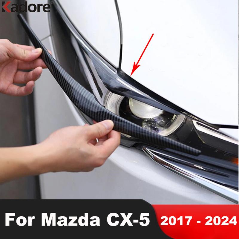 Front Head Light Lamp Eyebrow Cover Trim For Mazda CX-5 CX5 KF 2017-2024 Carbon Fiber Car Headlight Eyelid Strip Accessories