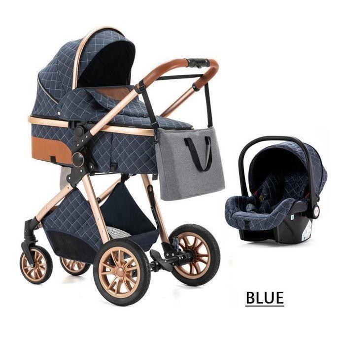 BAZARLAND30 Poussette 3 en 1 Bébé Combinée Siège-Auto Nacelle Trio Réversible Réglable Haute Qualité Roues increvables Canne BLEU.