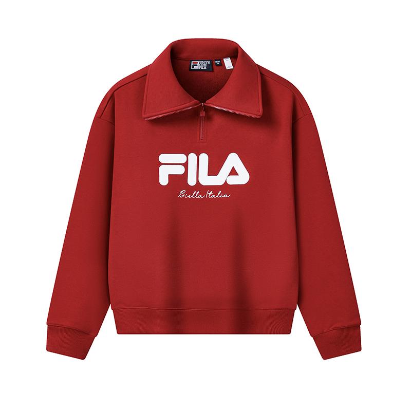 FILA Original Fashion Simple Classic Retro Sports Casual Versatile Comfortable Half-Zip Loose Sweatshirt Women sweatshirt Red F61W619203FWI