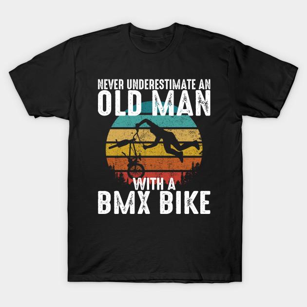 Men Black Print T-shirt Funny Vintage Never Underestimate An Old Man With A Bmx Bike No-Cut Transfer Paper Print Cotton Tshirt