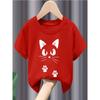 Cartoon cat print black and white short-sleeved children's T-shirt, boys' and girls' clothing