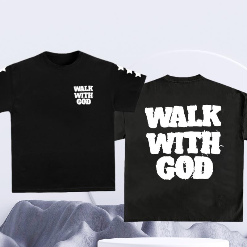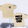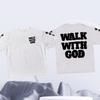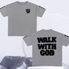 Spring and Summer Mens Cotton Walk with God Letter Printed Tshirt Casual Fashion Short Sleeved Round Neck Tshirt Street Top