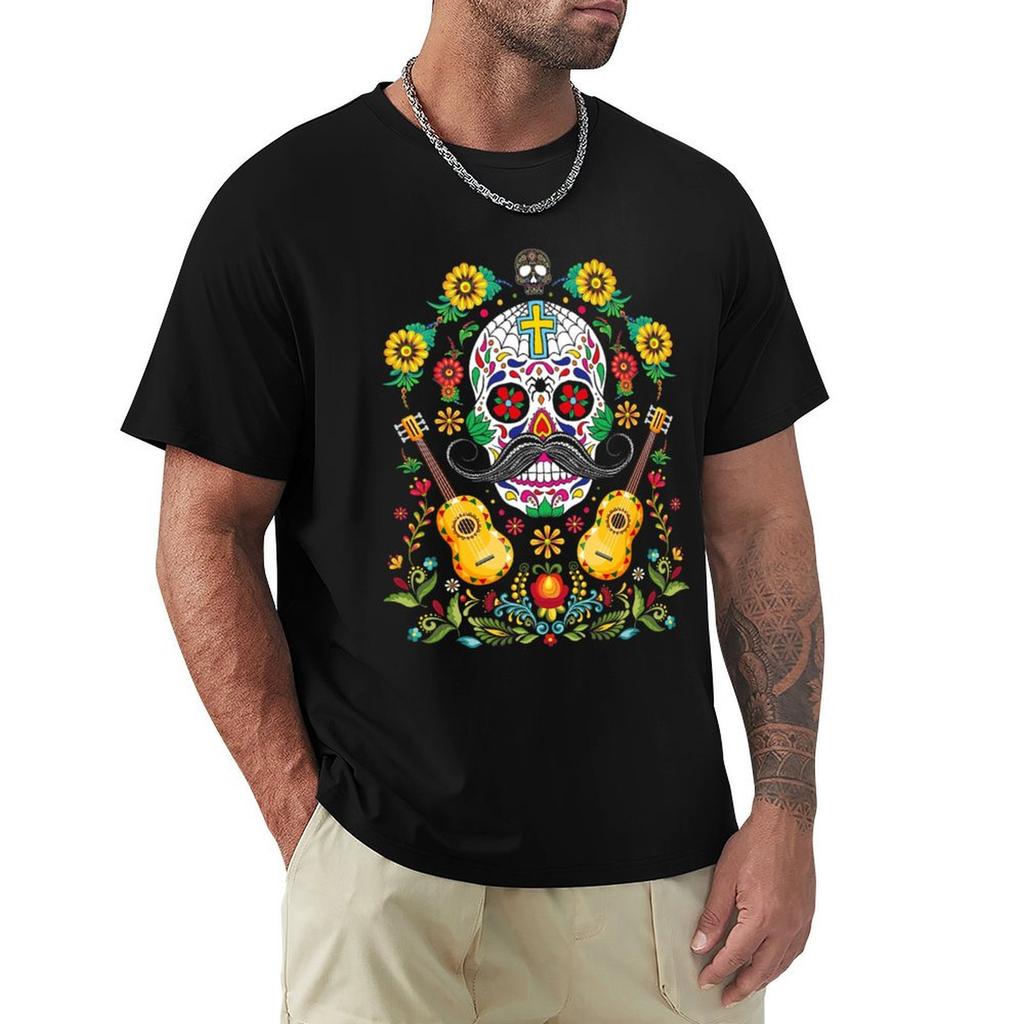Day of the Dead Guitar Sugar Skull Dead Dia De Muertos TShirt graphics anime figures anime tshirt men graphic t shirts