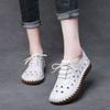 Woman's Summer Leather Hollow Out Flat Sole Shoes Round Toe Lace Up Non Slip Breathable Sandals Soft Sole Lightweight Cave Shoes