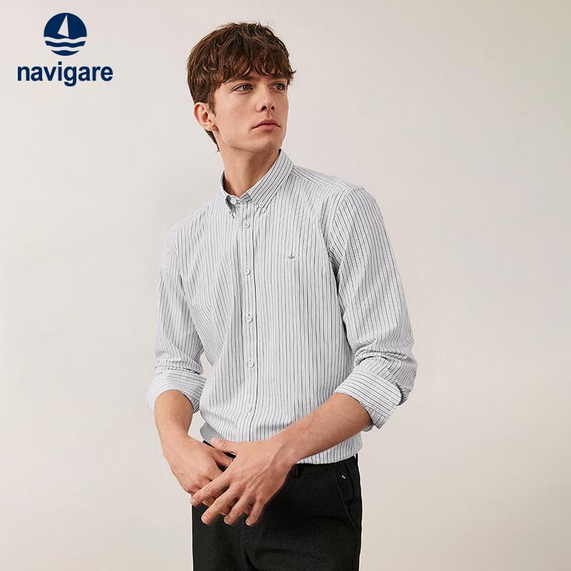 Navigare Men's Combed Cotton Long-Sleeve Striped Shirt