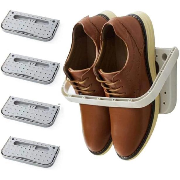 4 Pcs Plastic Hanging Shoe Rack For RV Camper Caravan Shelf Adhesive Wall Mount Folding Shoes Storage Organizer