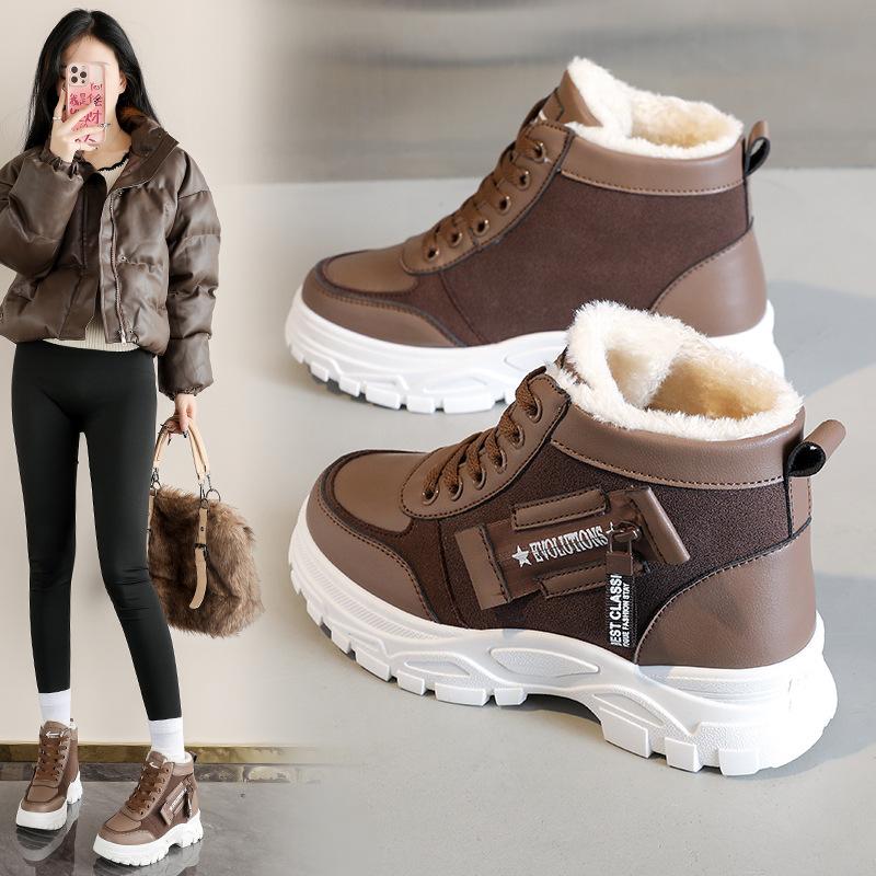 22 winter new non-slip high-top cotton shoes Martin cold-proof inner height increase soft leather snow boots velvet thickened shoes