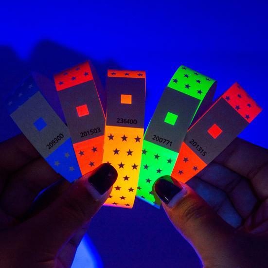 Βελτιωμένη ορατότητα: Κάθε βραχιολάκι διαθέτει ευκρινή και ζωντανή εκτύπωση, βελτιστοποιώντας την ορατότητα για αποτελεσματική διαχείριση πελατών σε διάφορα περιβάλλοντα όπως μπαρ, ξενοδοχεία και συναυλίες, ενισχύοντας τις διαδικασίες ασφαλείας και αναγνώρισης.