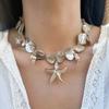 Retro Starfish White Shell Conch Pendant Necklace Women Simple Creative Colorful Stones Hand Woven beach Jewelry Girls