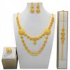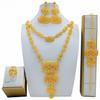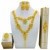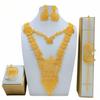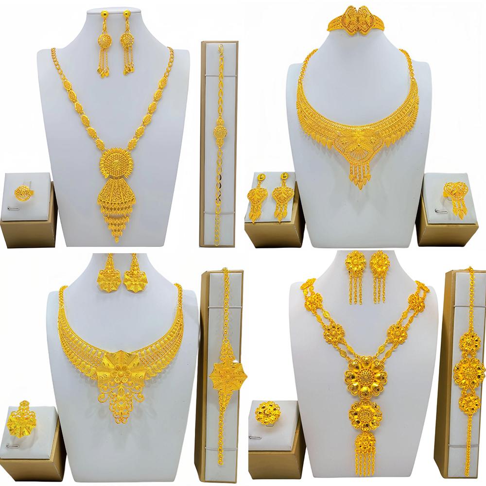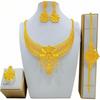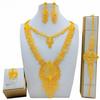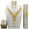 4 Τεμάχια Χρυσό Χρώμα Ινδικό Νυφικό Σετ Κοσμημάτων από Κράμα Ντουμπάι Κολιέ Σκουλαρίκια Για Γυναίκες Γάμο 24 καρατίων Επιχρυσωμένο Αφρικανικά Κοσμήματα Νύφη
