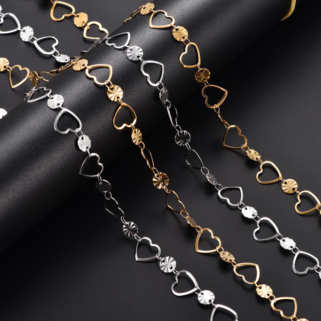 Dainty Stainless Steel Link Round Embossed Neck Chain Heart Necklace for Women Men Minimalist Gold Color Choker Metal Jewelry