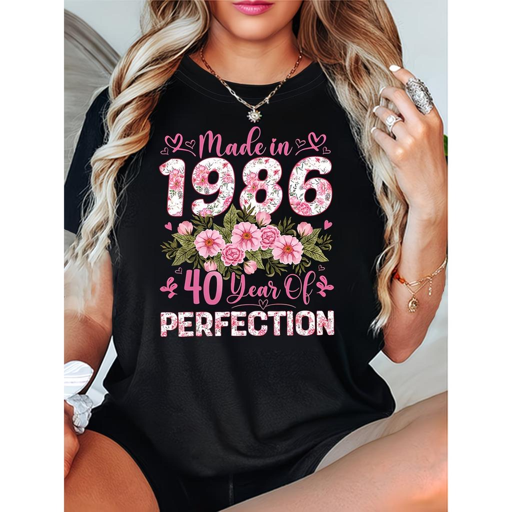 Women'S 1986 40 Years Of Perfection Flower Theme T-Shirt Casual Short Sleeve