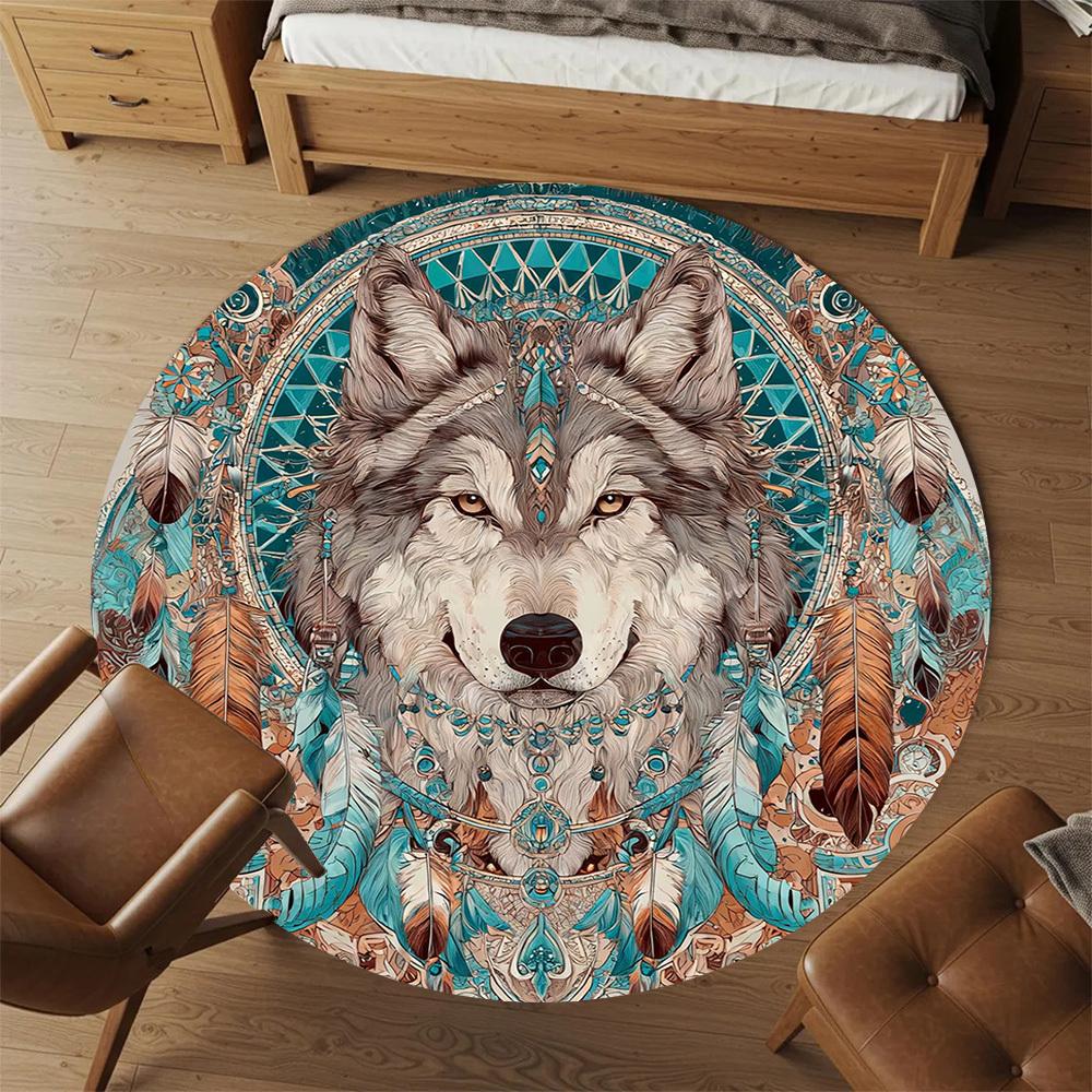 1PC wolf feathers Office Round Area Rug, Under Office Chairs Bedroom Living Room Home Decor, Carpet for Office -1110129