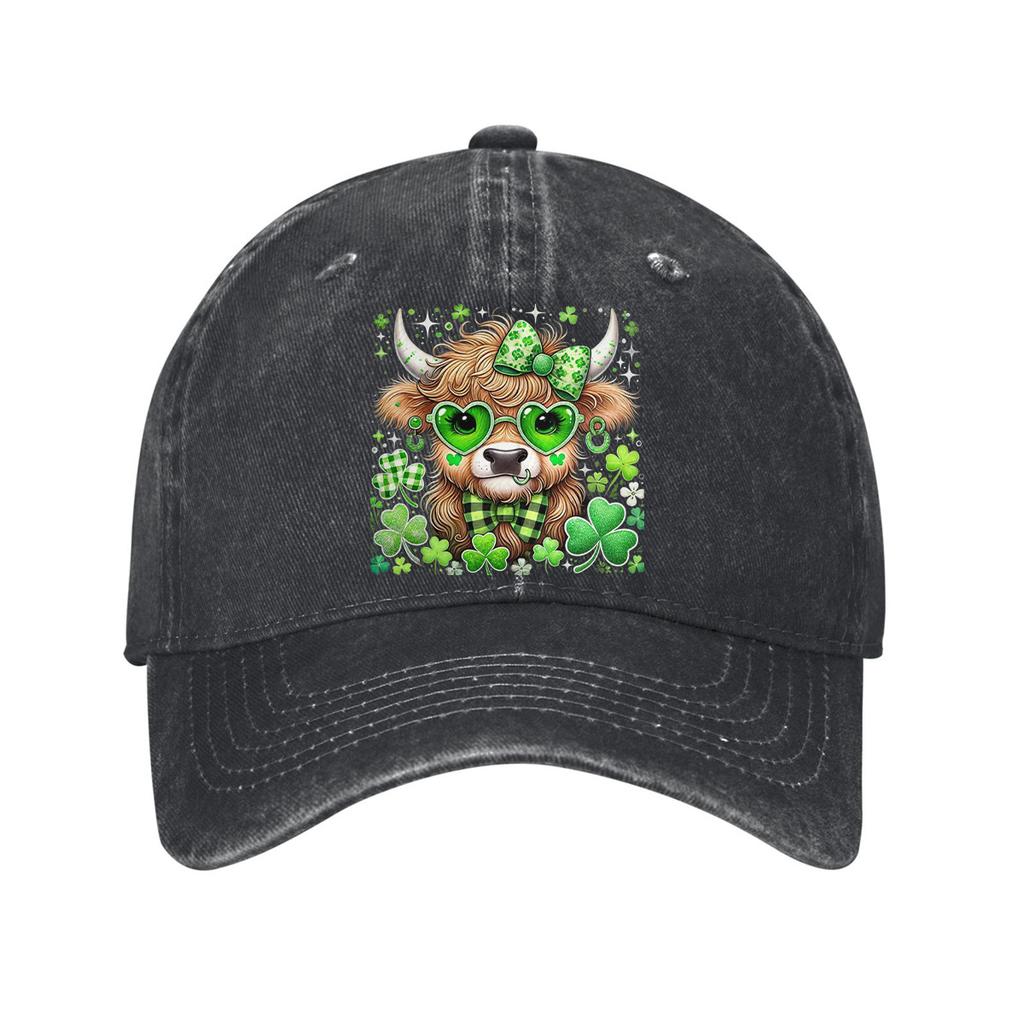 St Patricks Day Highland Cow Baseball Cap Adult Unisex Casual Denim Adjustable Sun Protection Hat
