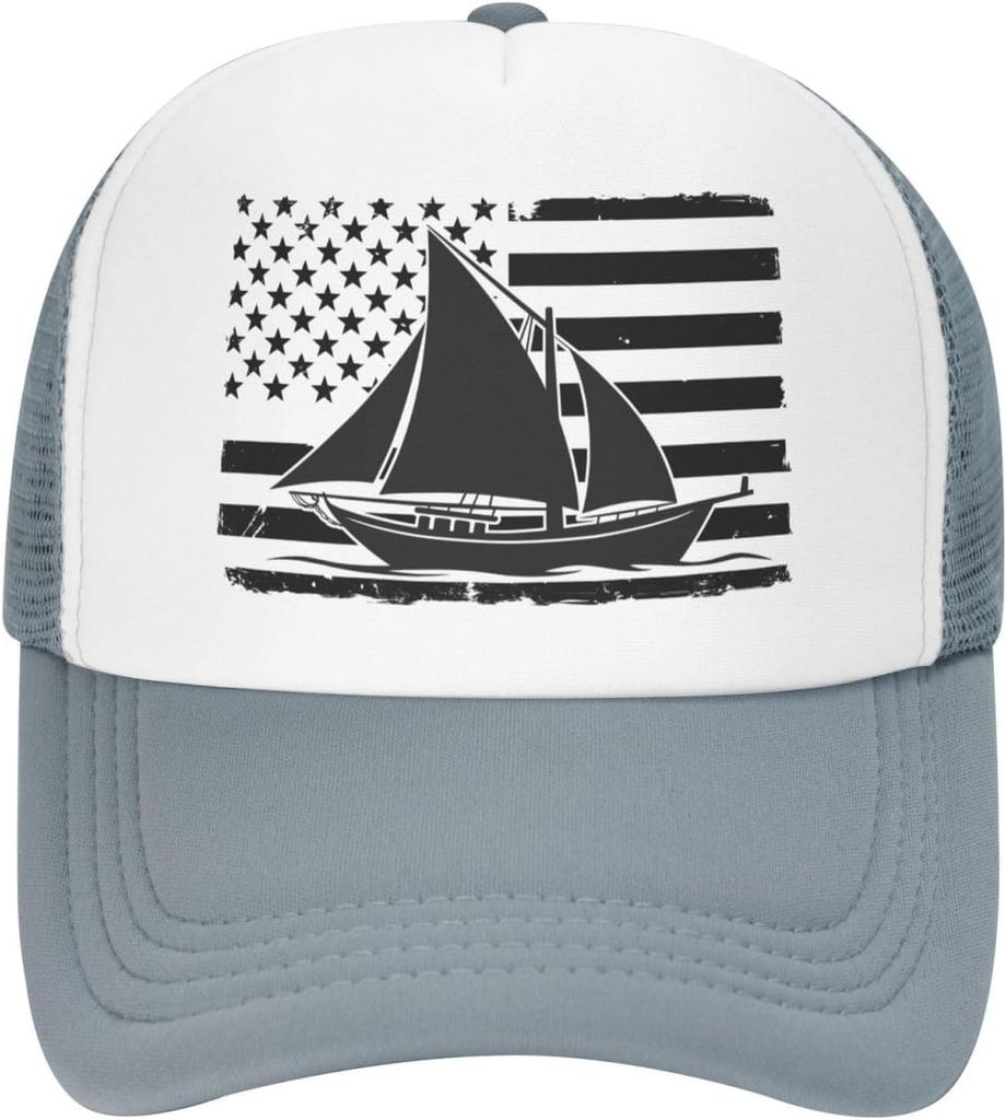 Distressed American Flag Sailboat Trucker Hat Sailing Graphic Mesh Cap Adjustable Outdoor Dad Hat