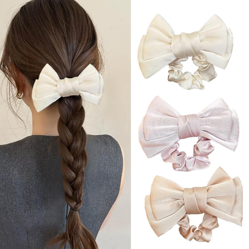 [2025 Unique Design]: This eye-catching, large bow hair scrunchie is perfect for creating a sophisticated and unique look. This hair tie set can be paired with a variety of outfits, regardless of the season, or simply paired with a ponytail to add a touch of glamour to your outfit.