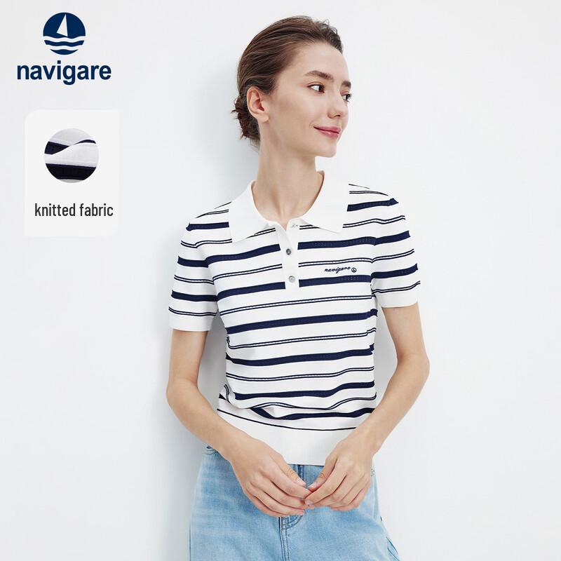 Navigare Women's Striped Knit Polo Shirt with Cutouts