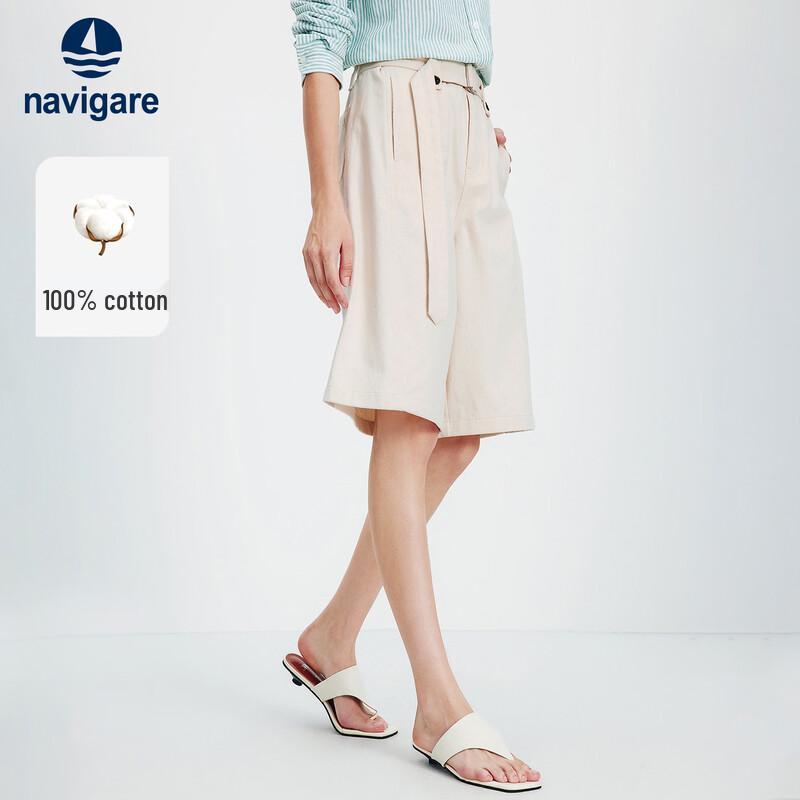 Navigare Women's Cotton A-Line Capri Pants with Belt