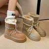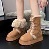 Thick-soled snow boots winter new lace-up two wear piled thickened large cotton shoes medium tube cotton boots